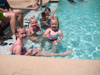 We spent time shopping, playing, going to Peter Piper Pizza, more playing and of course swimming. The girls loved having grandma at the pool because she gave them her undivided attention, and played with them in the "deep end."